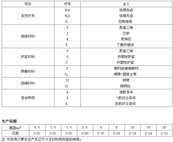 銅芯低煙低鹵聚氯乙烯J緣和護套控制電纜