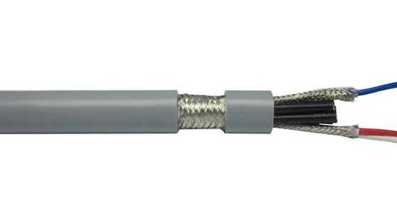 標準的2線對RS-485通訊電纜,特性阻抗120歐姆,導體為2線對4芯(2x2x24AWG)多股絞合鍍錫銅絲,PE絕緣護套;為適用于復雜的工業(yè)噪聲環(huán)境,特采用鋁箔/聚酯復合帶100%屏蔽率+鍍錫銅編制網90%屏蔽率共雙重屏蔽,并附有獨立TC接地導體,工業(yè)灰色PVC外護套,符合UL AWM 2919文件規(guī)范。