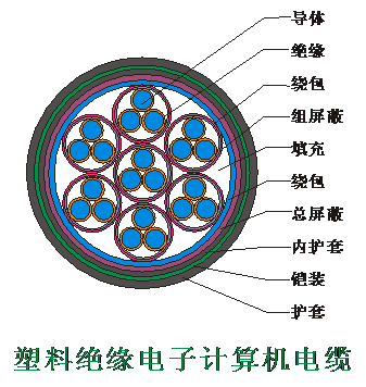 銅芯PE(XLPE)J緣鋁塑復合帶組屏蔽PVC護套電子計算機()電纜