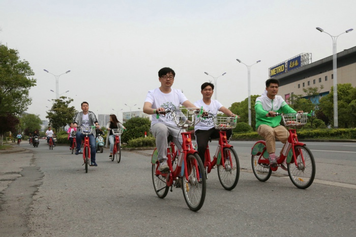 當天上午九點,由20多輛公共自行車組成的騎行隊伍從公司浩浩蕩蕩地出發,騎行路線全程15公里,途經鴻大路、江陽西路、潤揚路。在騎行的過程中,不少路人駐足觀看,不時有孩童為騎行隊伍加油。