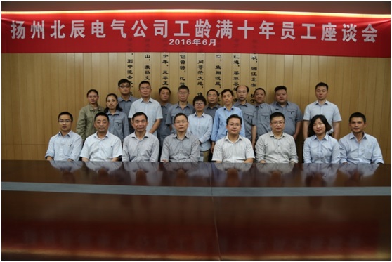 為進(jìn)一步提升老員工的企業(yè)歸屬感,樹立老員工“傳、幫、帶”的標(biāo)桿作用,更好地發(fā)揮自己的才能,為公司發(fā)展添彩。2016年6月7日下午,公司召開了2016年度“工齡滿十年員工座談會”。公司領(lǐng)導(dǎo)以及近20名老員工齊聚一堂,共憶在北辰的往昔歲月。