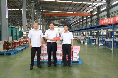 黃總相繼走訪了解了裝配事業(yè)部、開關事業(yè)部等部門的工作,每到一處都與堅守崗位的一線職工親切慰問,并送上礦泉水、八寶粥等防暑降溫品,為高溫天堅持工作的一線職工們送去關懷,對他們的辛勤工作表示感謝。同時鼓勵大家克服高溫困難,叮囑大家一定要勞逸結(jié)合,應對高溫天氣,要更合理地安排好工作和休息時間,注意防暑降溫,確保工作安全。黃總的慰問進一步激勵了公司職工的工作熱情,大家表示也會努力克服高溫困難,落實好安全生產(chǎn)管理措施,消除高溫天的安全隱患,確保工作井然有序的進行。