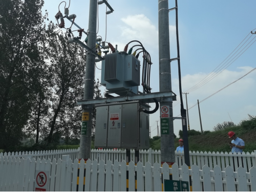 雙豐河電排站配電變壓器采用我公司生產的型號為:SZ13-M.ZT-400(125)/10有載自動調容調壓變壓器,該變壓器能根據負荷大小自動調節容量,使變壓器容量根據需要自動在125kVA和400kVA兩個檔位進行切換;同時結合線路電壓參數,及時五檔調節線路電壓,確保線路電壓合格率。
