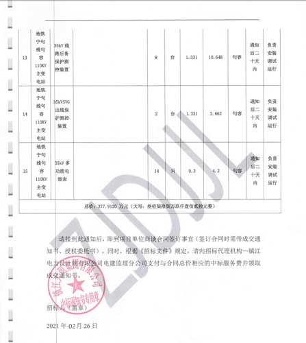 自2019年規劃建設寧句線地鐵起,公司領導高度重視,緊跟市場動態,持續跟進此項目,多次與地方政府和南京地鐵集團方面溝通聯系,為公司后期能中標地鐵項目打下了堅實的基礎。經過不斷的與客戶溝通洽談,最終地鐵110KV句容站項目工程物資于2021年1月順利掛網招標,蘇南營銷事業部和營銷中心收到招標公告后認真研究招標文件,相關人員加班加點,高效率、高質量的完成了投標任務。最終憑借公司良好的信譽、強大技術實力以及優秀的產品質量、合理的報價贏得了招標單位的肯定,讓公司在眾多的競爭者當中脫穎而出順利中標,這無疑是對公司的綜合實力、技術水平的肯定,也是客戶對北辰品牌的認可。