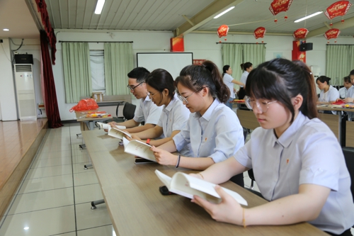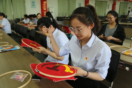 隨著絲線在女同志們的手中翻飛,活動(dòng)漸漸拉開(kāi)了帷幕。只見(jiàn)她們熟練地使著針?lè)ǎ舷麓┽樢€,每一針都小心翼翼,每一個(gè)過(guò)程都精益求精,把對(duì)黨和祖國(guó)的熱愛(ài)化在針里、融入線中、繡在心里。一幅幅黨徽繡品表達(dá)職工們對(duì)黨的堅(jiān)定信仰和赤膽忠心。在繡黨徽間歇,黨員同志們還學(xué)習(xí)了中國(guó)共產(chǎn)黨黨史,回憶紅色經(jīng)典和黨的崢嶸歲月。