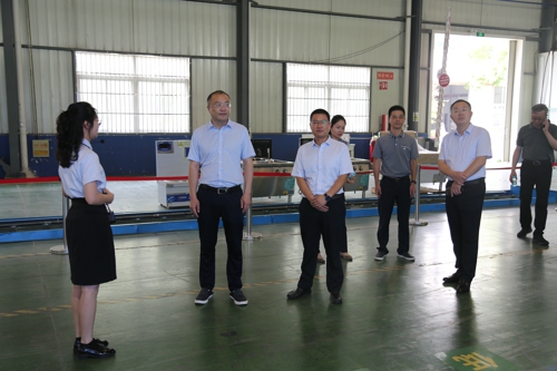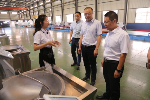 9月28日下午,漣水縣人民政府洪然縣長一行來到揚州北辰電氣集團有限公司調研,先后參觀了公司的多功能展廳、生產現場和全電廚房生產基地,并進行了座談。公司總經理陳健、黨總支書記尤正波等陪同調研。