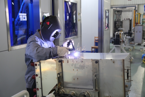 圖為開關事業部的焊接工人“焊”如雨下,戰高溫、斗酷暑,開關事業部加班加點于本周完成根據國網2022年第一批次標準化環網柜物資中標的數量要求而提前備貨的50面單元柜氣箱和交貨期緊急的23臺柱開工程,保證電力設備如期供應。