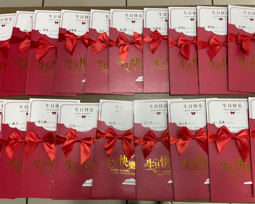 蛋糕象征團(tuán)結(jié)的集體,大家圍在蛋糕旁,齊唱生日歌,同享生日禮,共拍大合照,定格美好瞬間。工會還為每位壽星準(zhǔn)備了抽禮物盲盒環(huán)節(jié),壽星們倍感驚喜。現(xiàn)場大家暢所欲言,用歡樂釋放愛意,用笑聲感恩公司,盡情享受屬于自己的快樂時(shí)光。