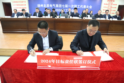 2月29日下午,揚州北辰電氣集團有限公司召開七屆一次職工代表大會暨2024年工作會議,在全體代表共同努力下,完成全部議程,取得圓滿成功。